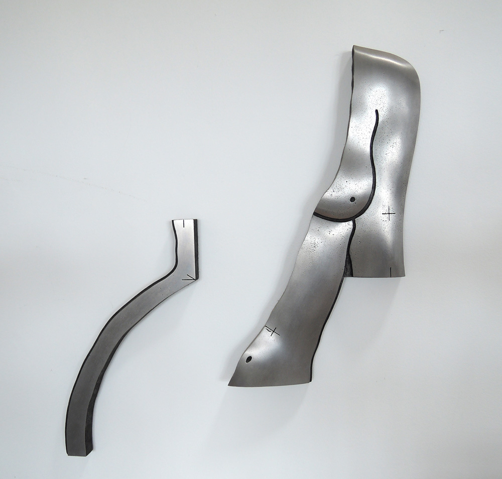I made quite a number of large figurative works, which were shown in my first exhibition, in the Fermoy Gallery in 1989. As I have often found, my mind moves position without any conscious decision making. In the early 1990’s my mind (which I listen out for!) was telling me to move up off the floor and onto the wall – still figurative but moving towards abstraction. There is one work still in my studio which is typical of the first steps in the change. The left hand of the two elements is completely flat and both elements have markings on them as if they were made from an engineering drawing – an early reference to the contrast/conflict between natural and mechanical.
