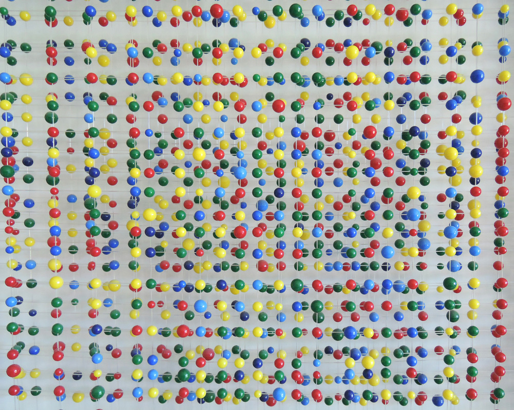 YOU PURSUE A FASCINATION WITH RANDOM NUMBERS WHICH ARE PRECISELY TRANSLATED INTO BEAD WORKS LIKE ‘CHAOTIC SYMMETRY’. NUMBERS FROM 1-9 ARE ASSIGNED TO VARIOUS BEAD SIZES WITH THE COLOURS OF RED, YELLOW, BLUE AND GREEN. SOME PEOPLE MAY ARGUE THAT THIS HAS MORE TO DO WITH MATHEMATICS OR ENGINEERING THAN ART. WHAT IS YOUR VIEW?