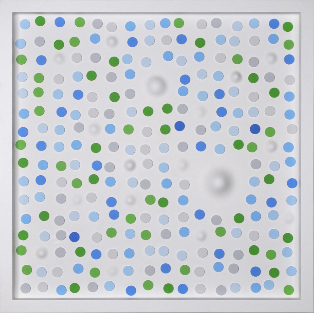 MORE RECENTLY, WORKS LIKE ‘QUANTUM DISTURBANCE 7’ USE THIS PRINCPLE BUT INCORPORATE FLAT DISCS AND BULGES. THE SOFT BULGES SEEM TO RANDOMLY SURFACE EFFECTING THE POSITION OF THE DISCS AROUND THEM CAUSING AN UNEXPECTED DYNAMIC. ARE THESE 2 RANDOM SEQUENCES MERGED TOGETHER? WHAT ARE YOU TRYING TO ACHIEVE?