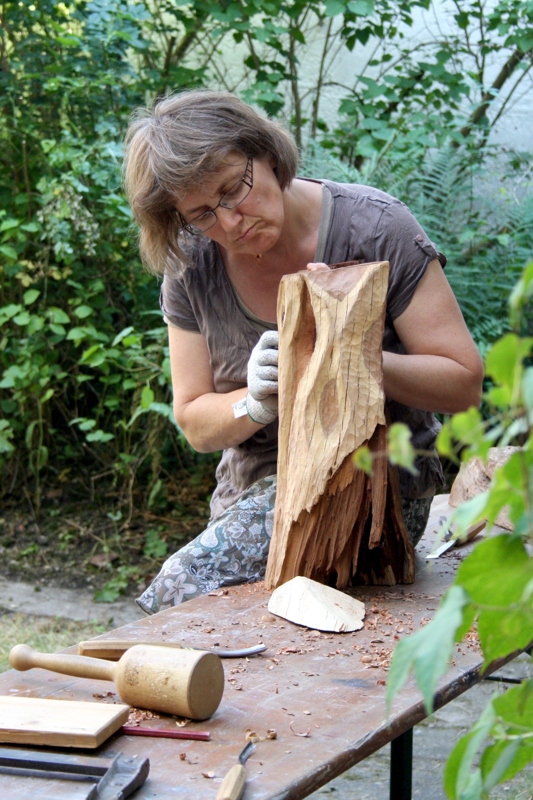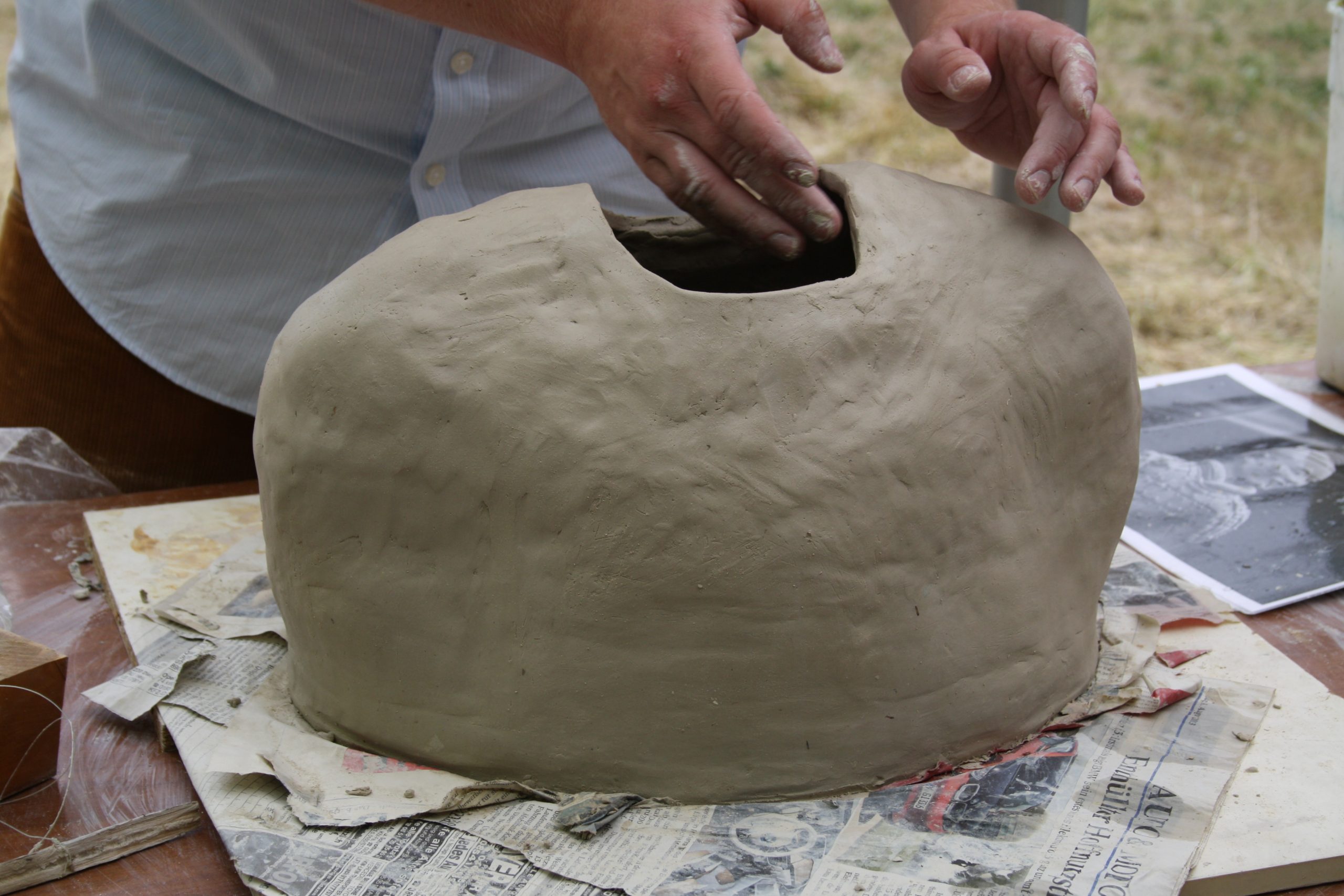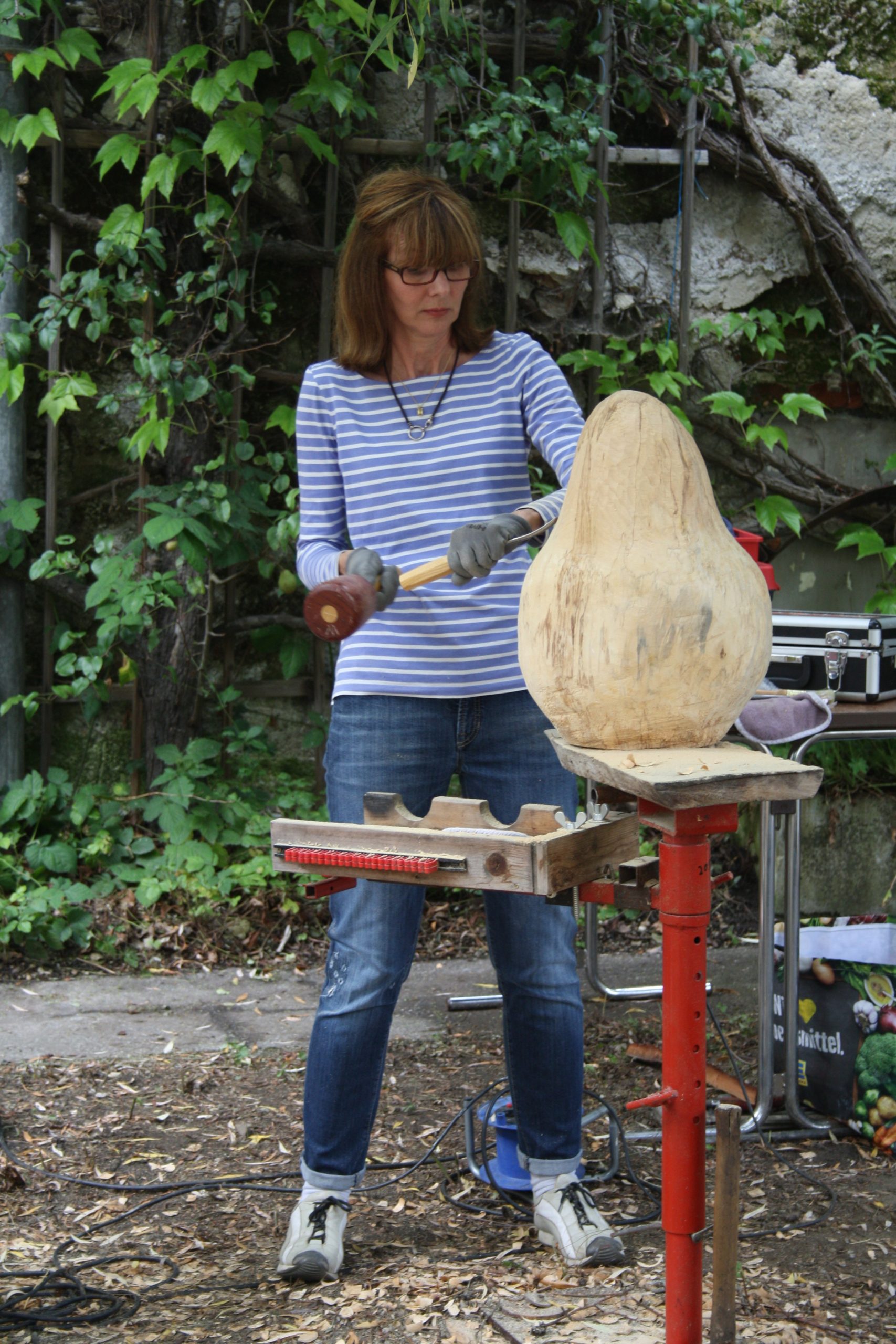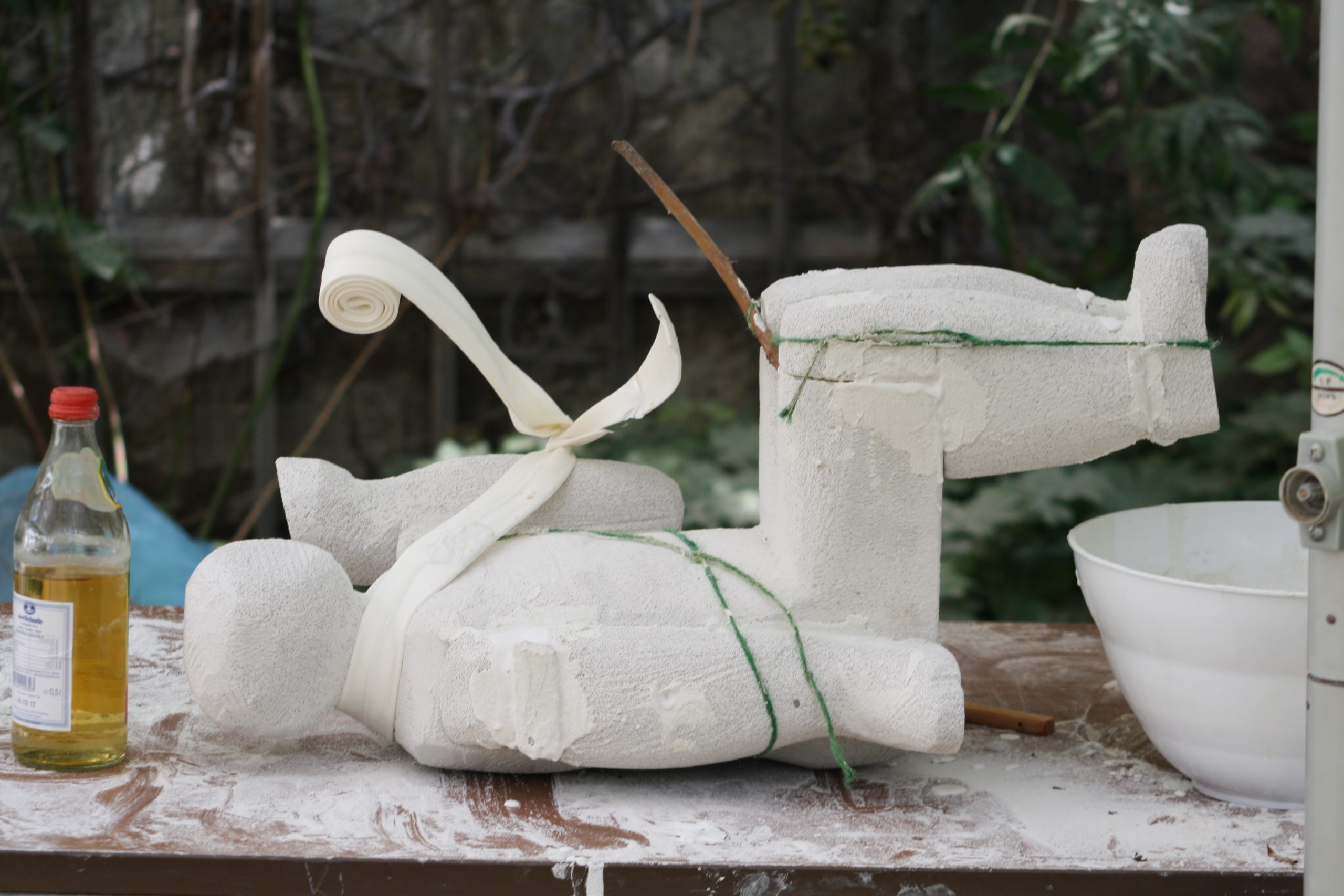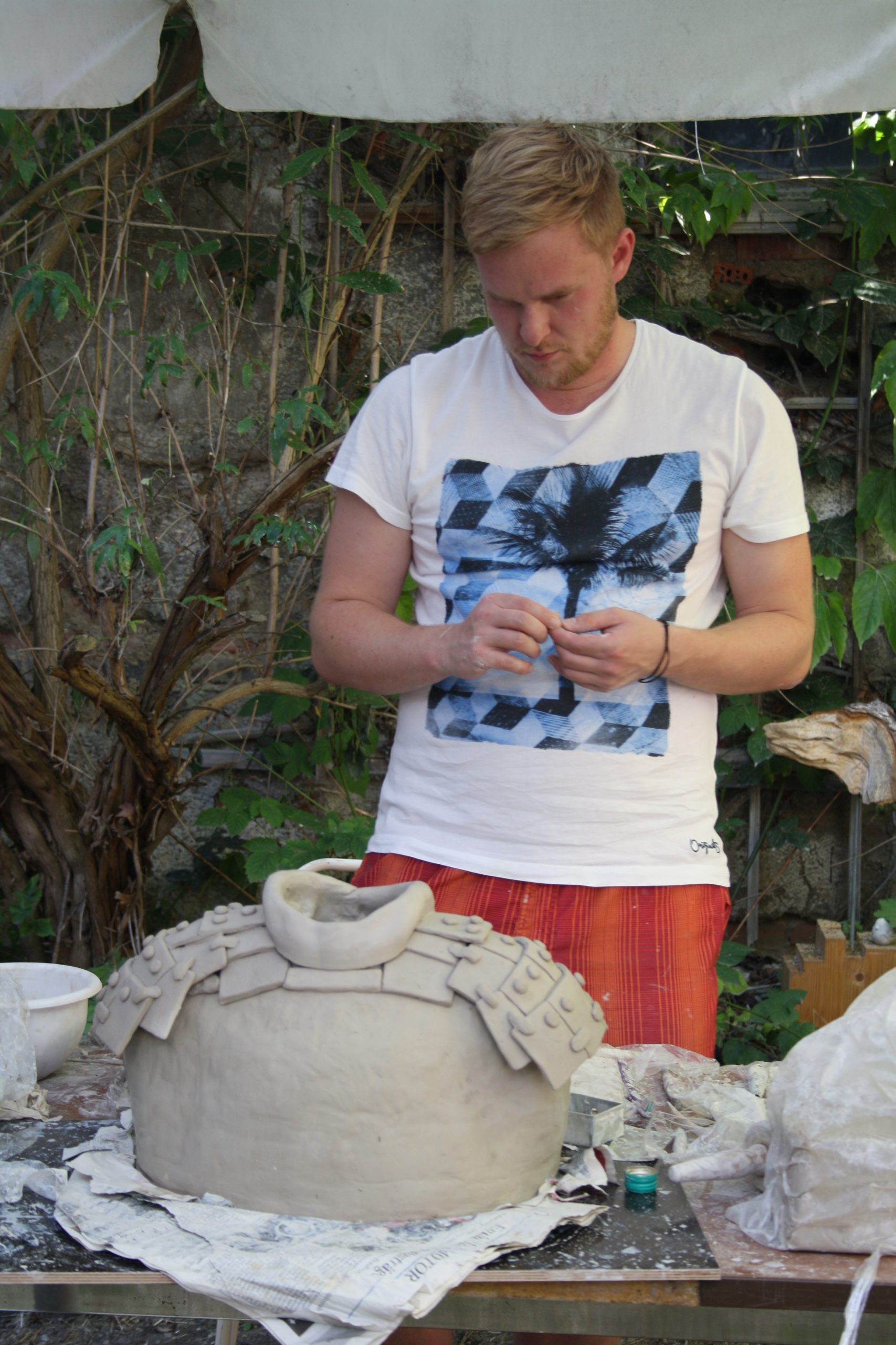 The Schloßökonimie was pretty much the same as it had previously been. The biggest sad difference was that the brewery was locked up for health & safety reasons. We discovered that we would be working in the garden of the Forester’s cottage. However, making sculpture outdoors under natural light gave us the best working environment. There was space for us inside if it rained. Luckily, we were blessed with the best summer weather we could have ever wished for.
