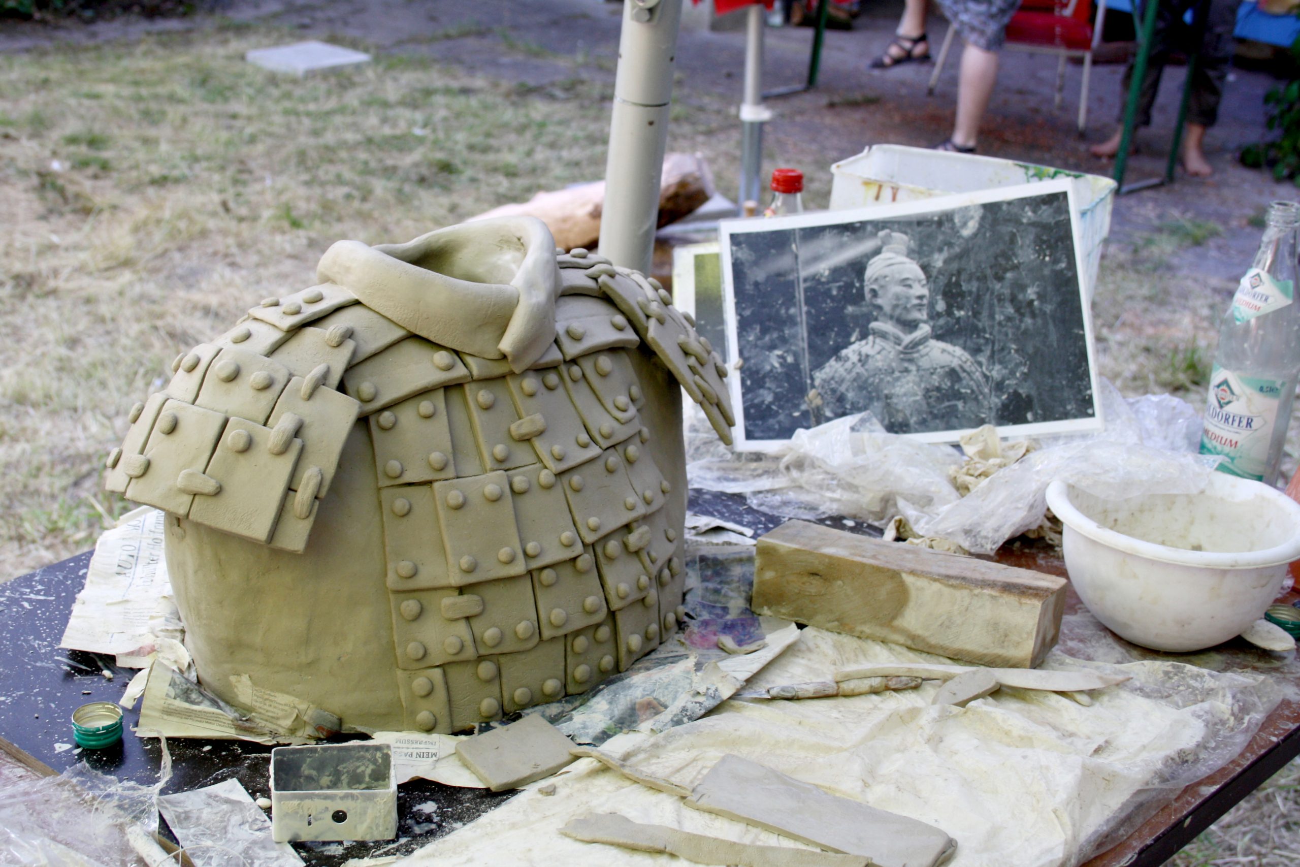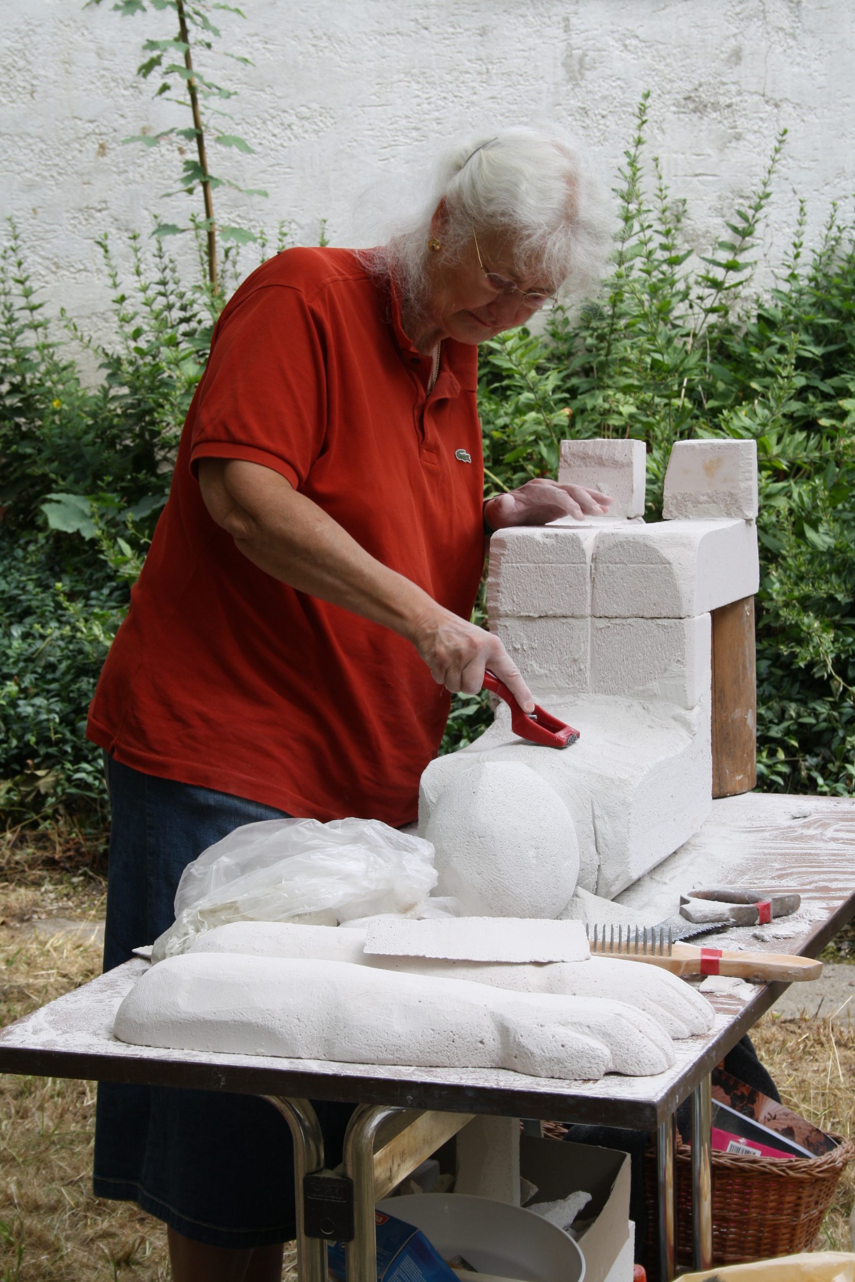 Everyone brought their ideas with them and worked intensively over the seven days to develop their practice. Wonderful work was created: a terracotta warrior, wood carving, an almost life-size figure made of breeze blocks, and plaster and wire sculptures were realised. There was also the opportunity for people who preferred to work in 2 dimensions to attend a life drawing session. I encouraged my 3 dimensional group to use clay to capture the life model’s short poses. They were surprised at how much they could achieve in such a short period of time.