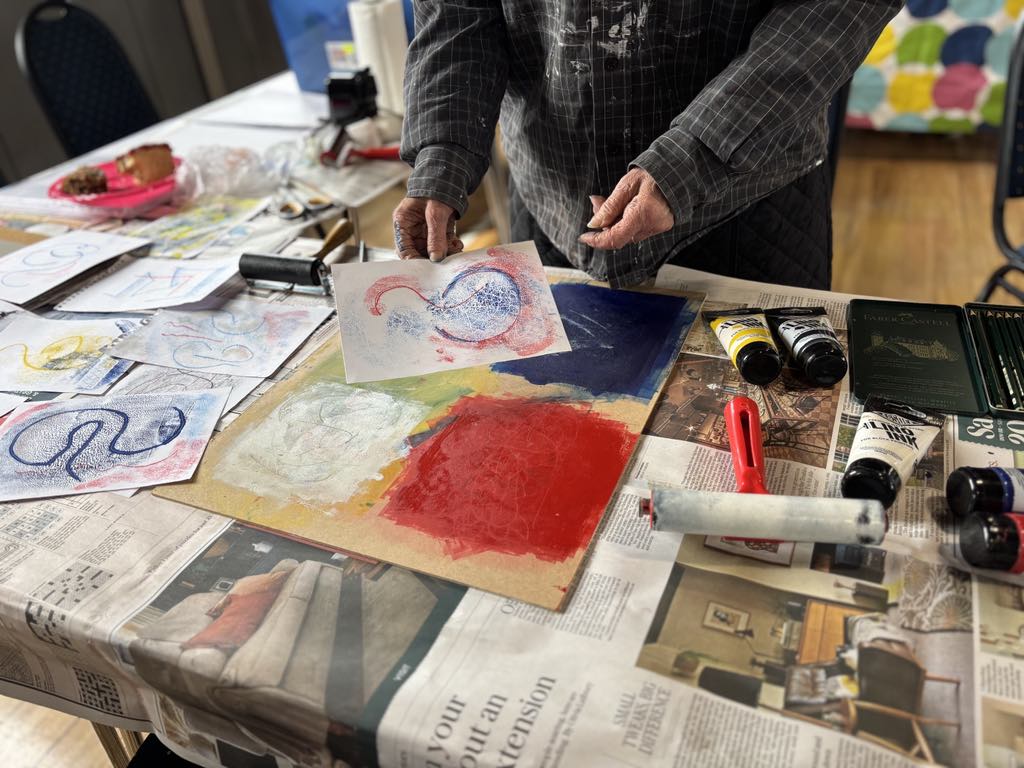 The Easter Extravaganza at Heacham Public Hall on 19th of April was a huge success. Much fun was had by all. Easter bonnets, clay animals, monoprints and seascapes were made. Plus people tried their hand at card making, quilling, scrap-booking, crocheting and pebble painting – Oh and lots of cakes and scones (thanks to Joanna at Modern Story) were consumed!